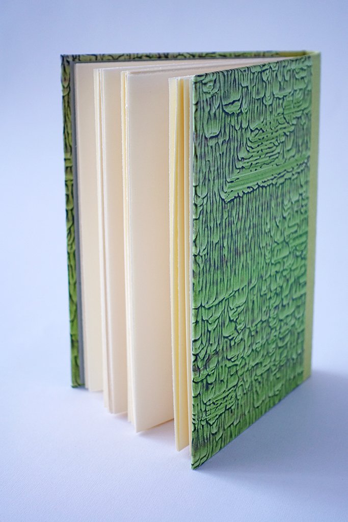 • twarda okładka pokryta autorskim, ręcznie malowanym, niepowtarzalnym papierem