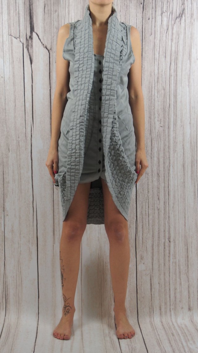 Sukienka proj. Alexa Christophera. Materiał: mix włókien (w dotyku jak gruba bawełna/jeans). Zupełnie niespotykana forma, odjechany krój. Orientacyjna cena sklepowa 85funstów=510zł.