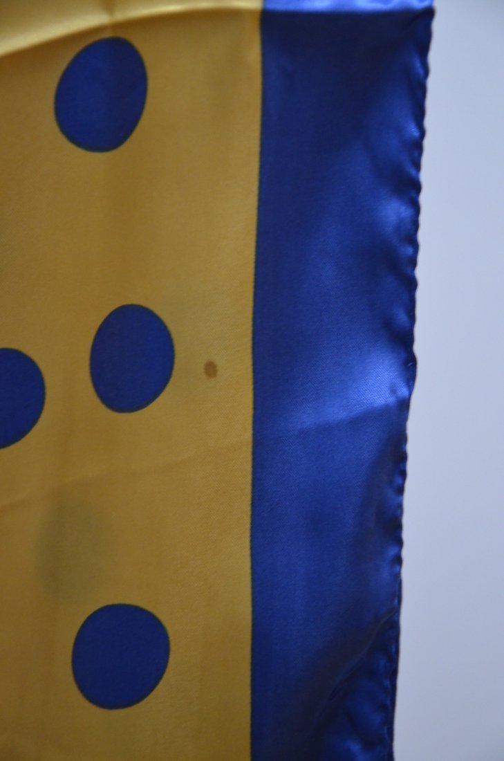 apaszka jest nowa, ale posiada ciemniejsze plamki powstałe w procesie produkcji (zdjęcia)