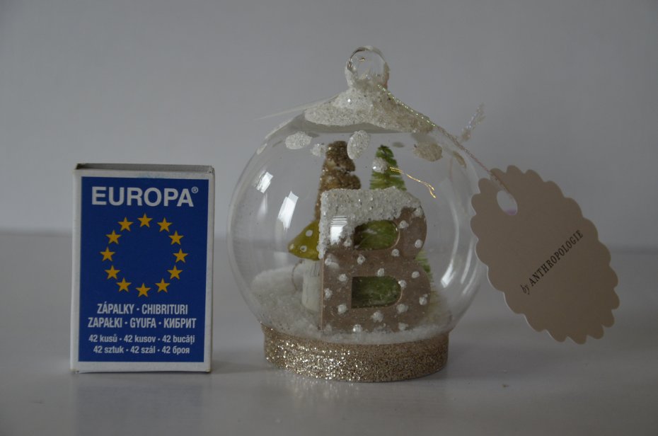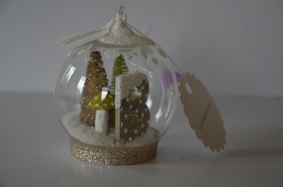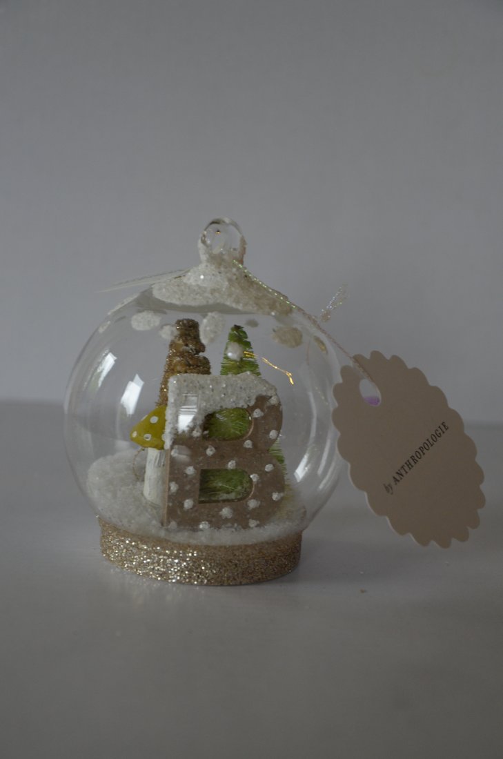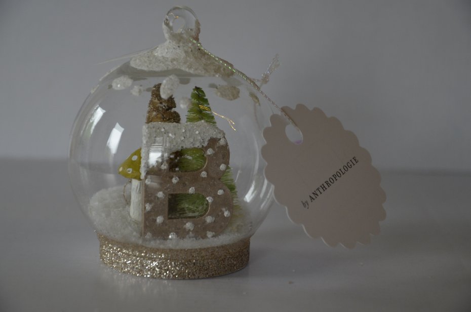 nowa bombka Anthropologie jak śnieżna kula, z monogramem, litera B