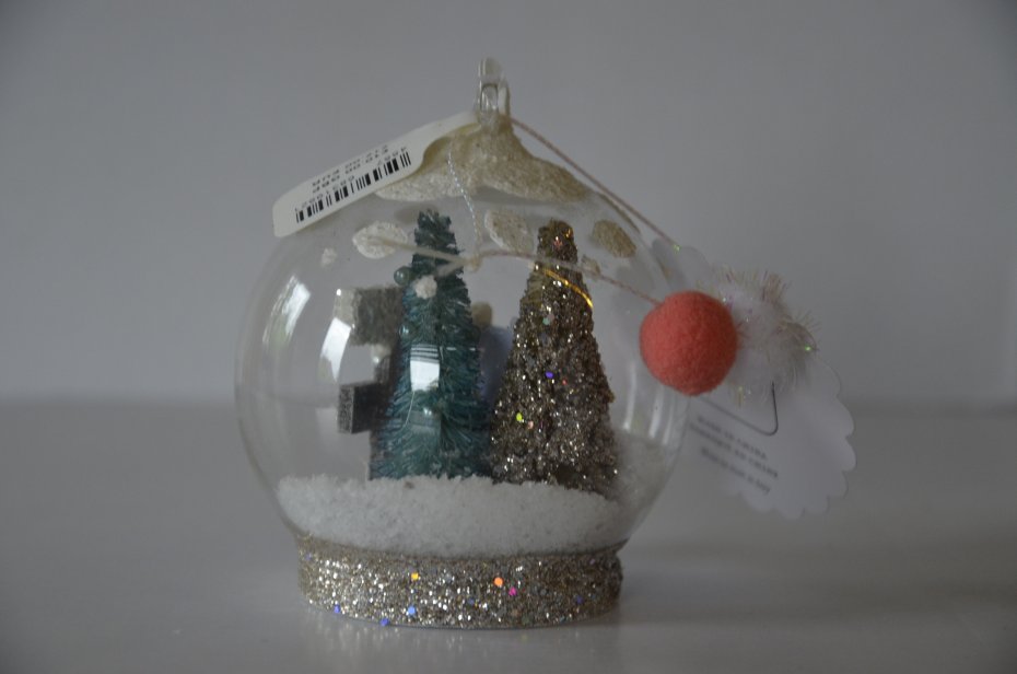 nowa bombka Anthropologie jak śnieżna kula, z monogramem, litera F