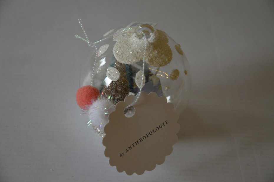 nowa bombka Anthropologie jak śnieżna kula, z monogramem, litera F