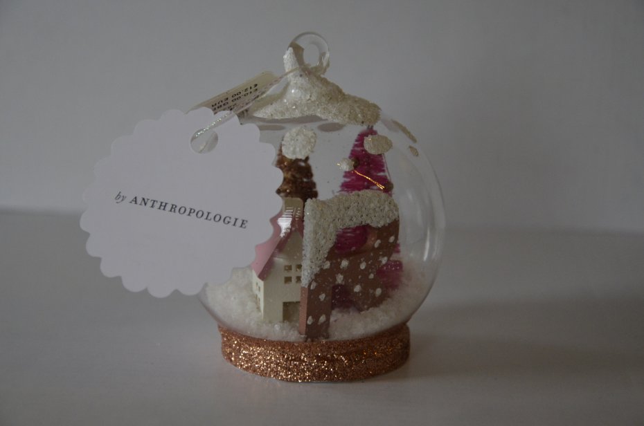 nowa bombka Anthropologie jak śnieżna kula, z monogramem, litera R