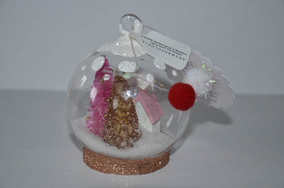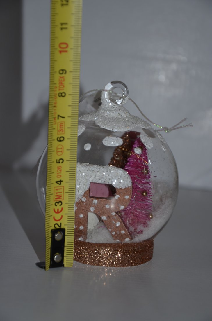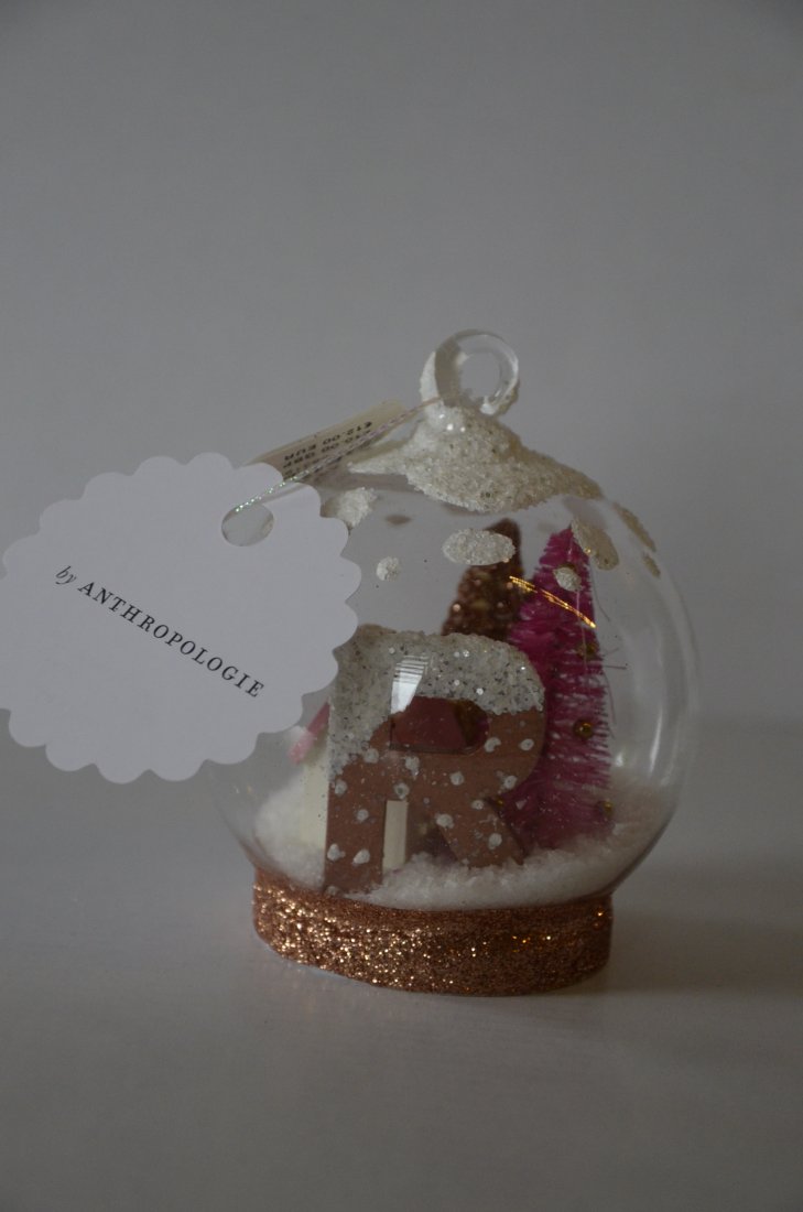 nowa bombka Anthropologie jak śnieżna kula, z monogramem, litera R