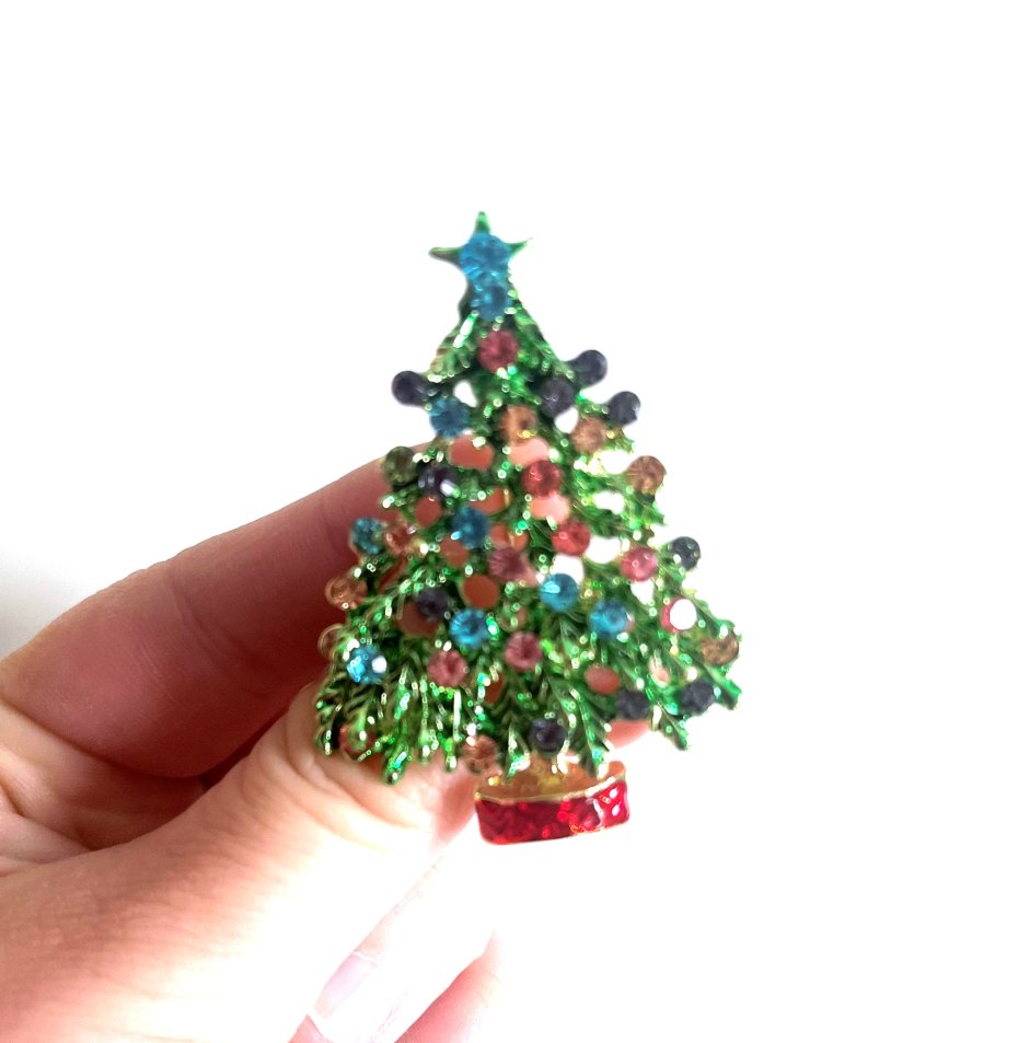 nowa, urocza broszka z choinką. Wysadzana błyszczącymi i matowymi kryształkami. W kolorze starego złota, w stylu vintage