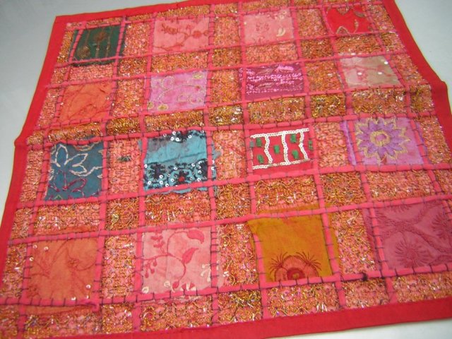 4.  > Nowa etniczna patchworkowa poszewka na poduszkę 40 x 40 wyszywana cekinami indyjska dekoracyjna I I (nr 4886094)