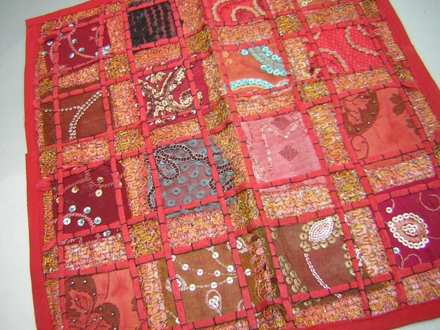 NOWA ETNICZNA PATCHWORKOWA POSZEWKA NA PODUSZKĘ 40 X 40 WYSZYWANA CEKINAMI INDYJSKA DEKORACYJNA I V