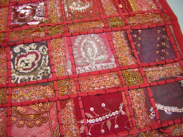 4.  > Nowa etniczna patchworkowa poszewka na poduszkę 40 x 40 wyszywana cekinami indyjska dekoracyjna V I I (nr 4886082)