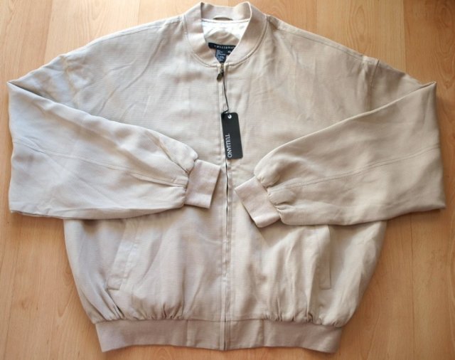 Świetna, bluza/kurtka marki tulliano, nowa z metką. materiał 100% matowy jedwab o ciekawym splocie. pod spodem cienka podszewka i kieszonka na zamek. bluza niesamowicie lekka, elegancka. kolor bardzo jasny beż. Rozmiar z metki xl. bluza pewnie męska, ale ten fason może być także damski. w przypadku Pań polecam dla większych rozmiarów. w ramionach cienkie poduszki, ale jak widać na manekinie nie zniekształcaja sylwetki, są niewidoczne. Podaję wymiary mierzone na płasko;