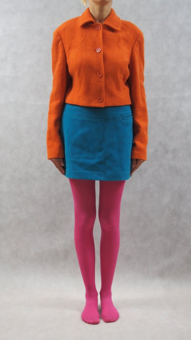 Gruba mini marki Blend She. Kolor morski, podszewka różowa. Kolory soczyste, intensywne.Kieszonka z przodu. Wszystko obszyte kontrastową lekko widoczną różową nitką.