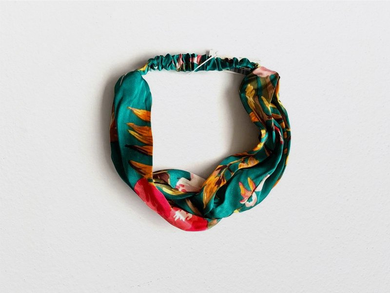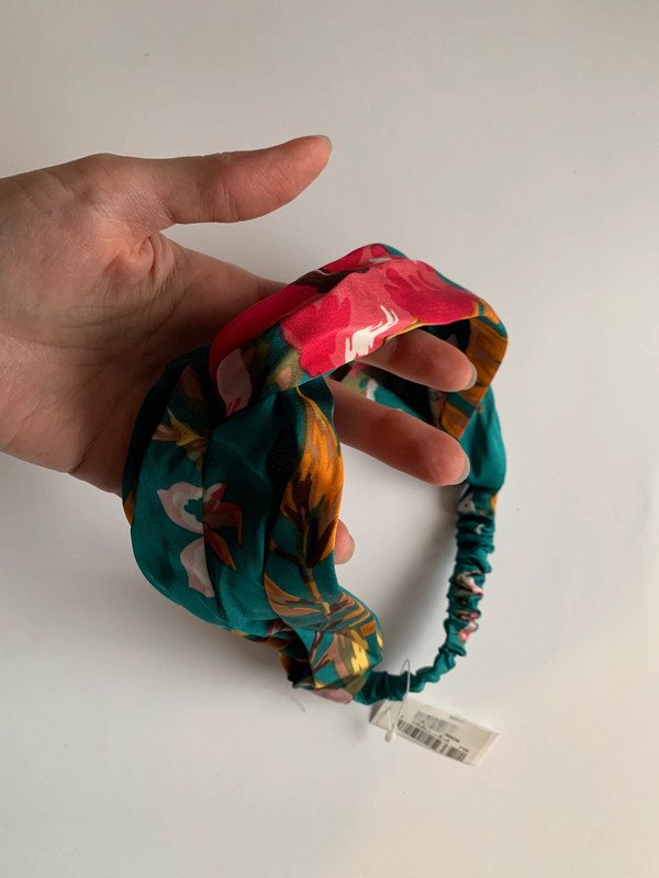 Nowa opaska w kwiaty, wykonana z satynowego materiału w turkusowym kolorze. Idealnie nadaje się do codziennych stylizacji, dodając uroku i elegancji każdemu lookowi.