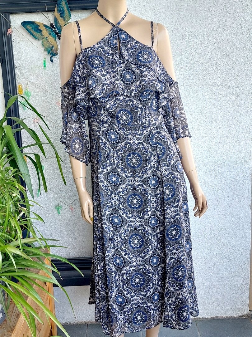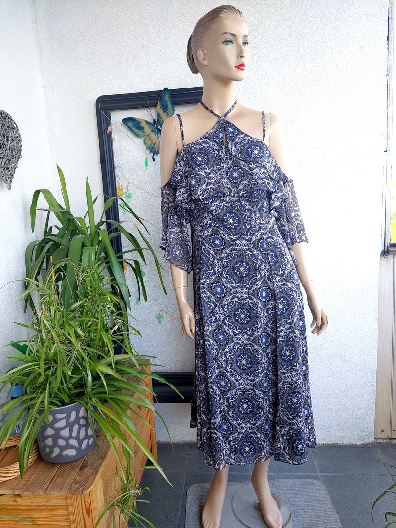 sukienka marki river island, nowa z metką. materiał 100% delikatny poliester pod spodem delikatna podszewka.rozmiar z metki 16, ale mniejsza proszę sprawdzić wymiary. na manekinie małe 38, z tyłu zamek.