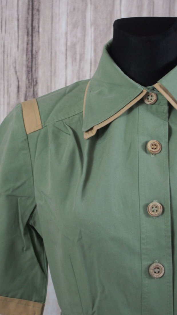 Szmizjerka marki Dana Szczecin. Nowa. Brak informacji o materiale - ale to jest bawełna. Guziczki drewniane. Smakowity kąsek dla wielbicielek lat 50-tych.