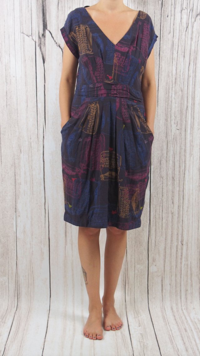 Boska sukienka we wzory. W stonowanych jesiennych barwach. Brak informacji o materiale. Moim zdaniem wiskoza. Z kieszeniami. Orientacyjna cena sklepowa 360zł.