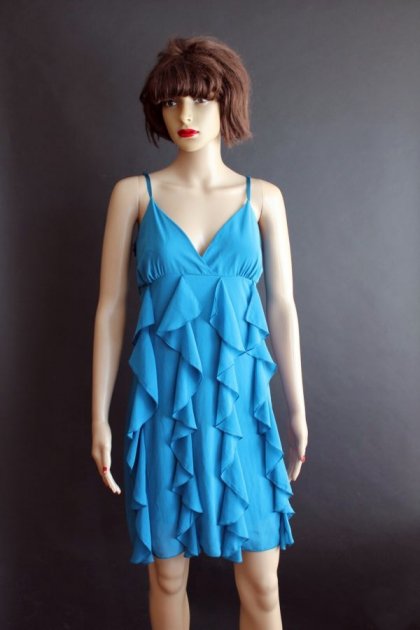 Świetna nowa sukienka New Look. Kolor niebieski. Zdobiona efektownymi falbanami. Sukienka na regulowanych ramiączkach. Sukienka na podszewce. Materiał polyester. Stan nowa z metką. Cena z metki 44 Euro.