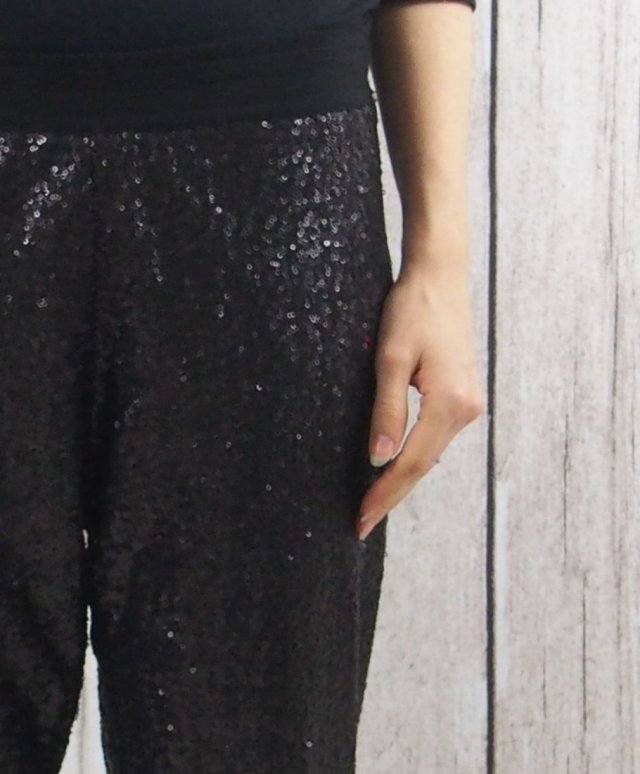 Świetne spodnie ekskluzywnej marki Soaked in luxury. Całe w cekinach - nie są to klasyczne cekinki, są zmatowione i dużo mniejsze od klasycznych - wyglądają przecudnie. Orientacyjna cena sklepowa 300zł.