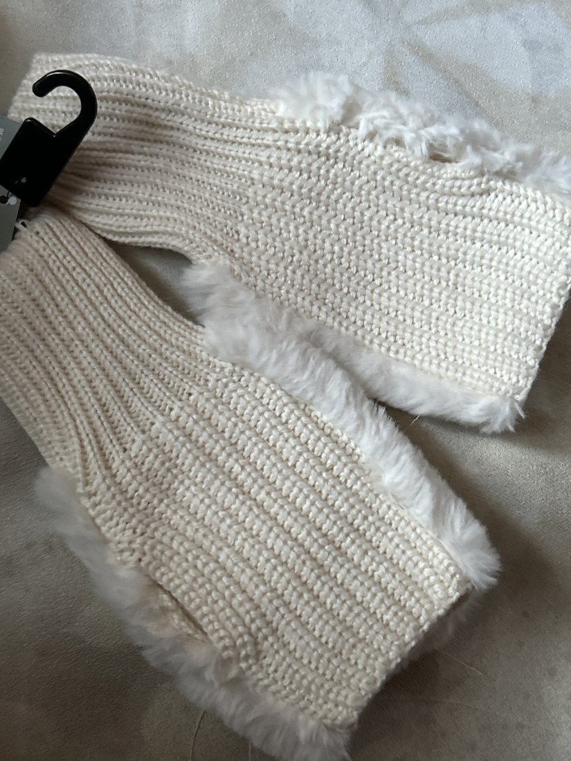 Nowe oryginalne mitenki ( bez palców ). Idealne do prawadzenia auta :) Metka obecna . Szerokość futerka 10 cm długość futerka 12 cm długość całkowita 21 szerokość w "palcach" 8 ( rozciąga się ) nadgarstek 7 ( wzór ściągacz rozciągliwy ) Stan zachowania bardzo dobry. Nowe, nie używane z metką . Nadają się na precent