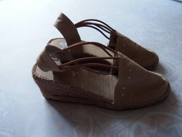 Piękne letnie buty materiałowe z mięciutką wkładką. Klasyczne, eleganckie z naturalnych materiałów - płótna i wikliny, podbite wysokiej jakości gumową podeszwą. Projektantka: Emma Artesania.