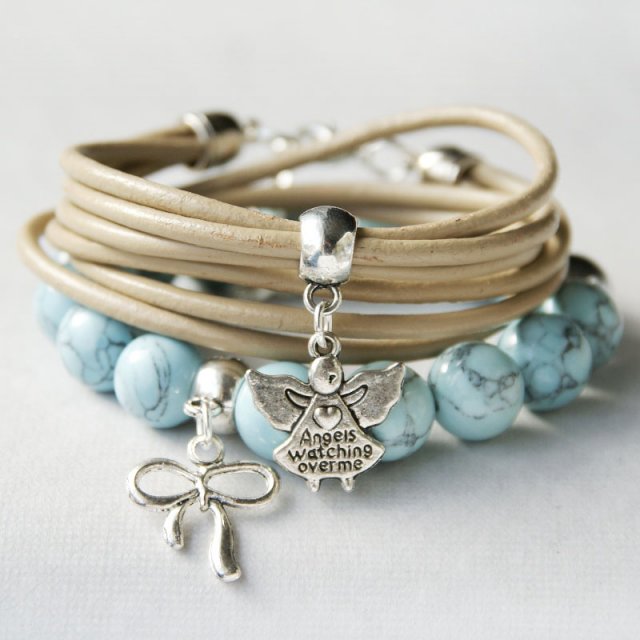 KOMPLET 2 BRANSOLETEK - razem taniej! WARTOŚĆ ZESTAWU: 111zł.. niezwykle efektowne bransoletki - jedna na solidnej, podwójnej lince elastycznej, wykonana ze sporych kul błękitnego howlitu (12mm) oraz 1 kuli srebrnego hematytu - pasuje na nadgarstek 15,5-16,5cm ; druga z 3 rzemieni (3mm) ze 100% skórki naturalnej - zapinana na karabińczyk - dł. regulowana za pomocą solidnego, ozdobnego łańcuszka... BRANSOLETKI PASUJĄ NA NADGARSTEK 15,5-16,5cm.... BIŻUTERIA ZAWSZE PODRÓŻUJE W OZDOBNYM OPAKOWANIU :-) ... zobacz całą kolekcję!