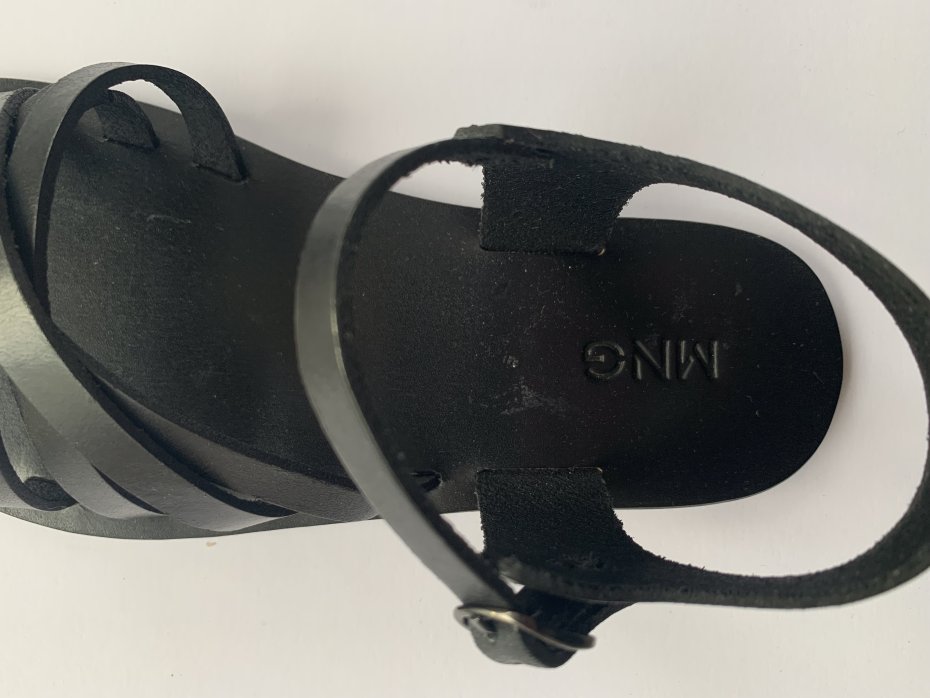 Zupełnie nowe sandałki wykonane ze sztywnej skóry bydlęcej, dobrej jakości.