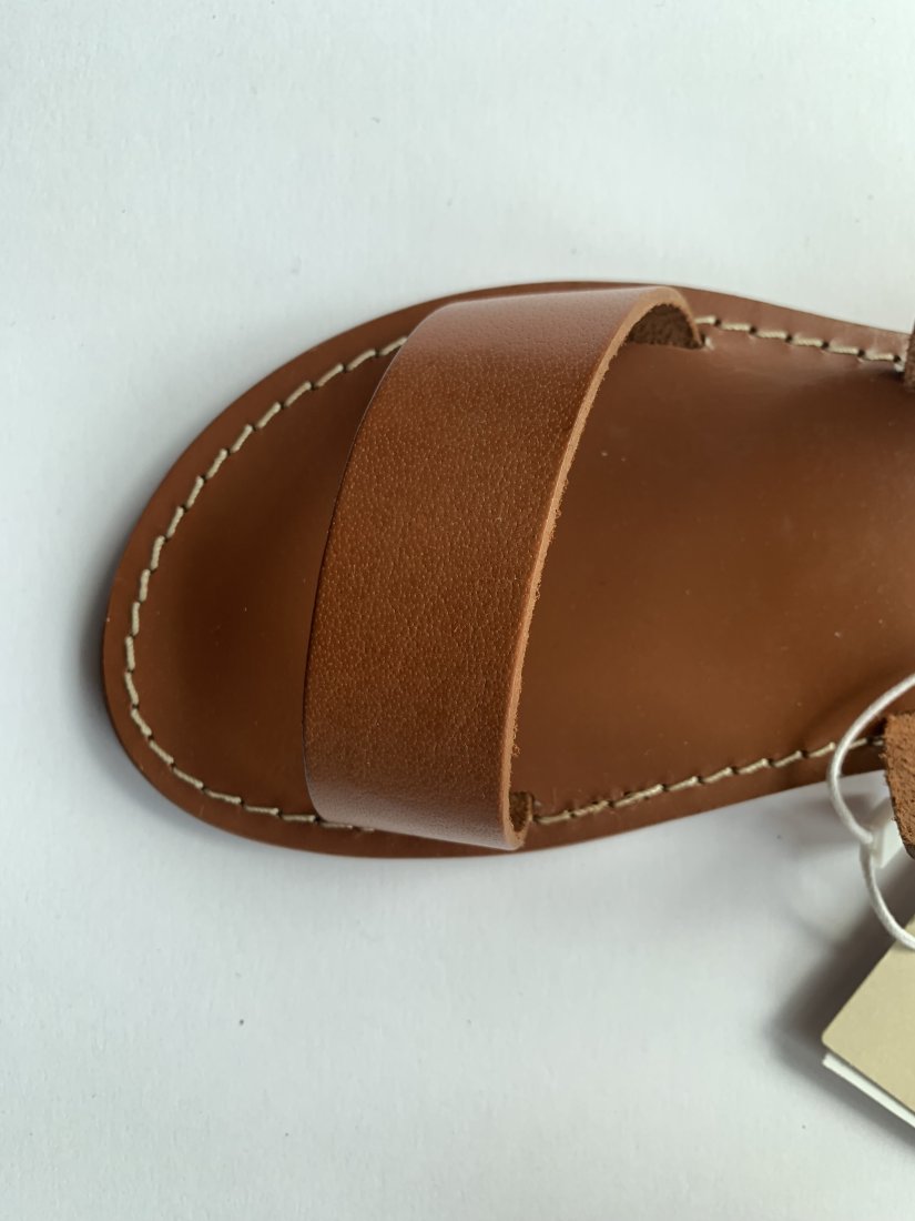 Zupełnie nowe sandałki wykonane ze sztywnej skóry bydlęcej, dobrej jakości.