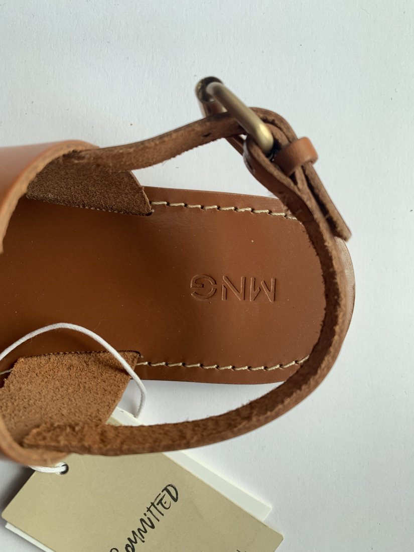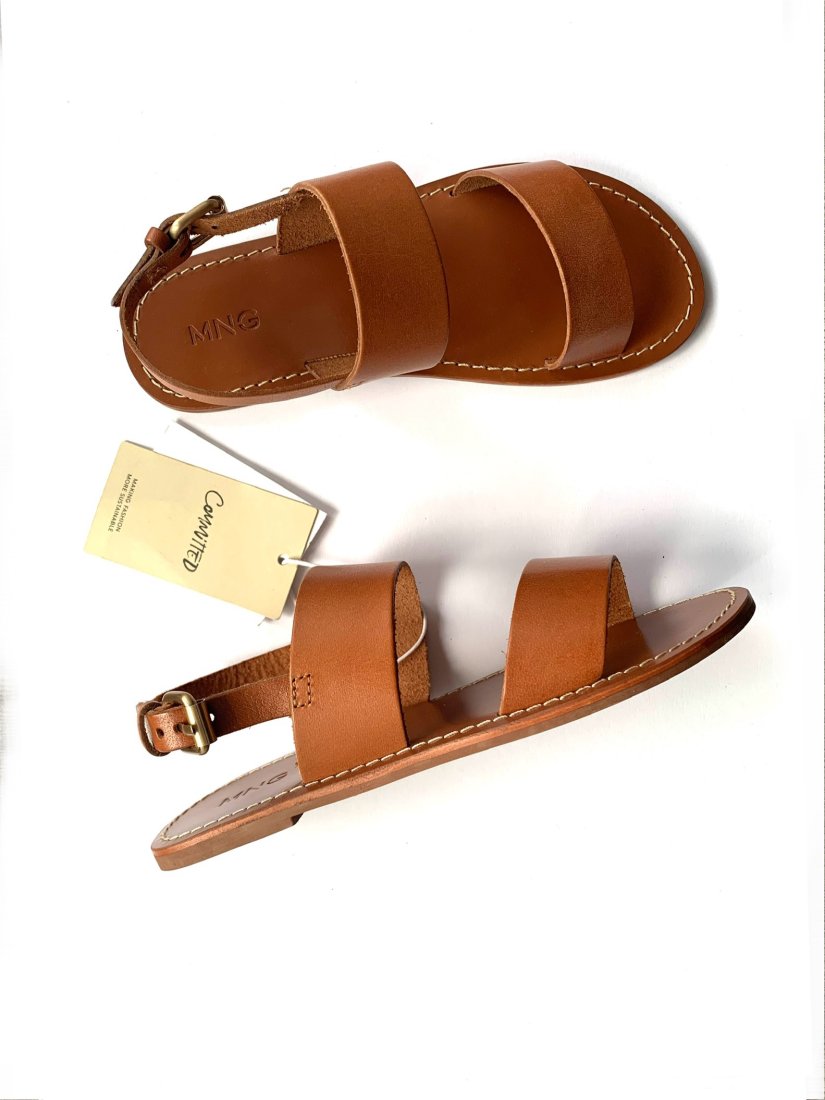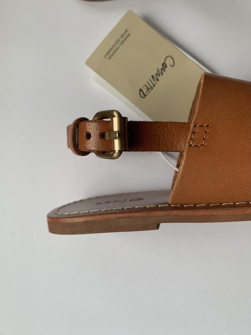 Zupełnie nowe sandałki wykonane ze sztywnej skóry bydlęcej, dobrej jakości.