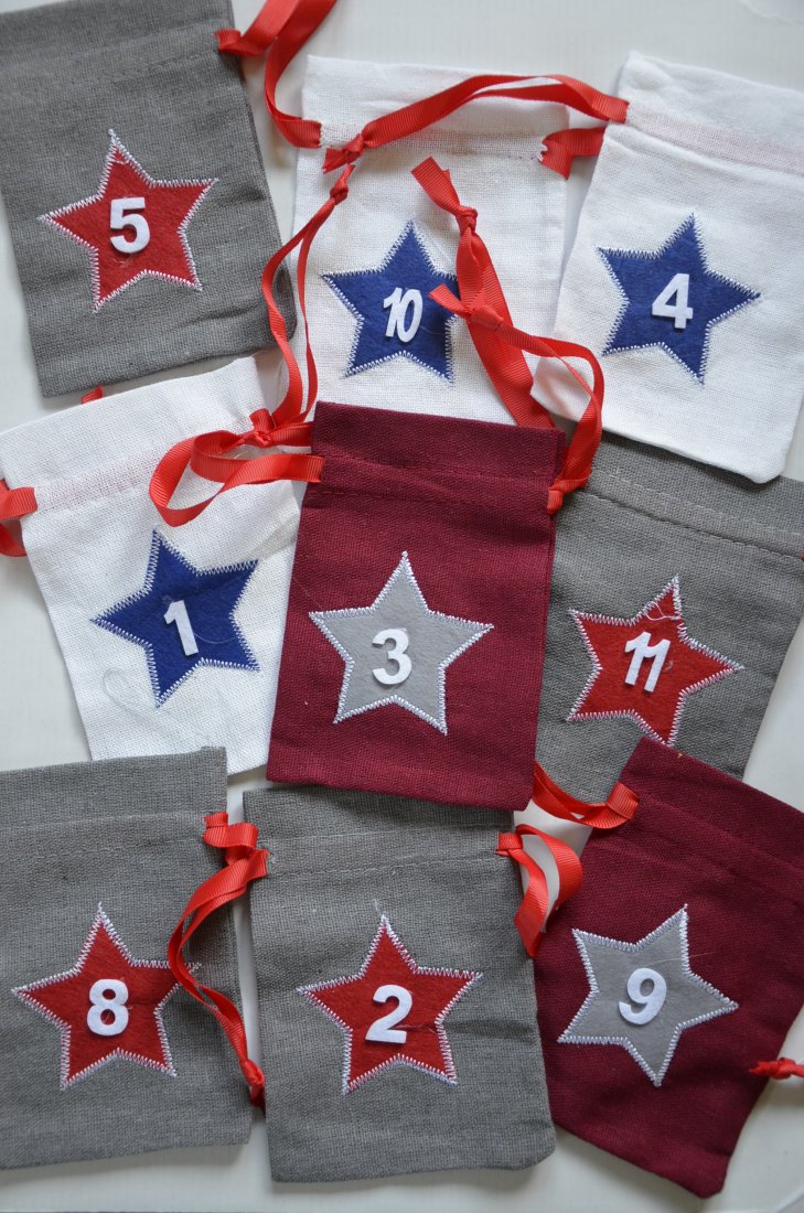 nowe woreczki - 9 sztuk, z numeracją jak na zdjęciu; wymiary woreczka ok. 14cmx9,5cm;