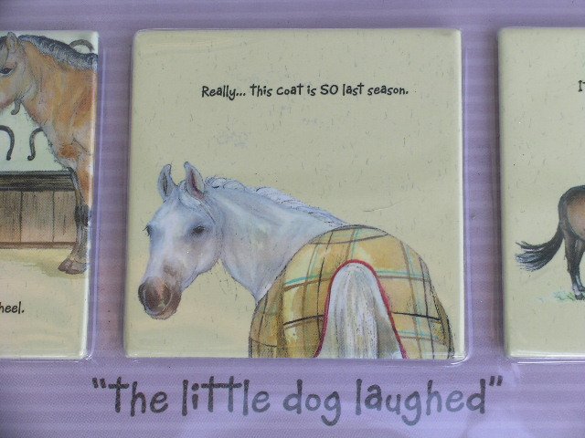 Trzy magnesy lodówkowe. Porządnie wykonane, całe czepne od spodu. Z końskim dowcipem :) Każdy 6,5 x 6,5 cm. Nowe, nie odpakowane. Super na prezent :)