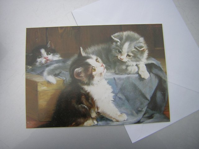 Przyjemna, nowa, duża kocia kartka pocztówka, z dołączoną białą kopertą. Twardy , satynowo połyskujący papier, otwierana. Z tyłu napis - FLUTTERBYE PRESS BY Julius Adam / 1852 - 1913 /. Urocza, ciekawa, inna. 12 5 x 17,5 Wysyłajmy pocztówki !! :)