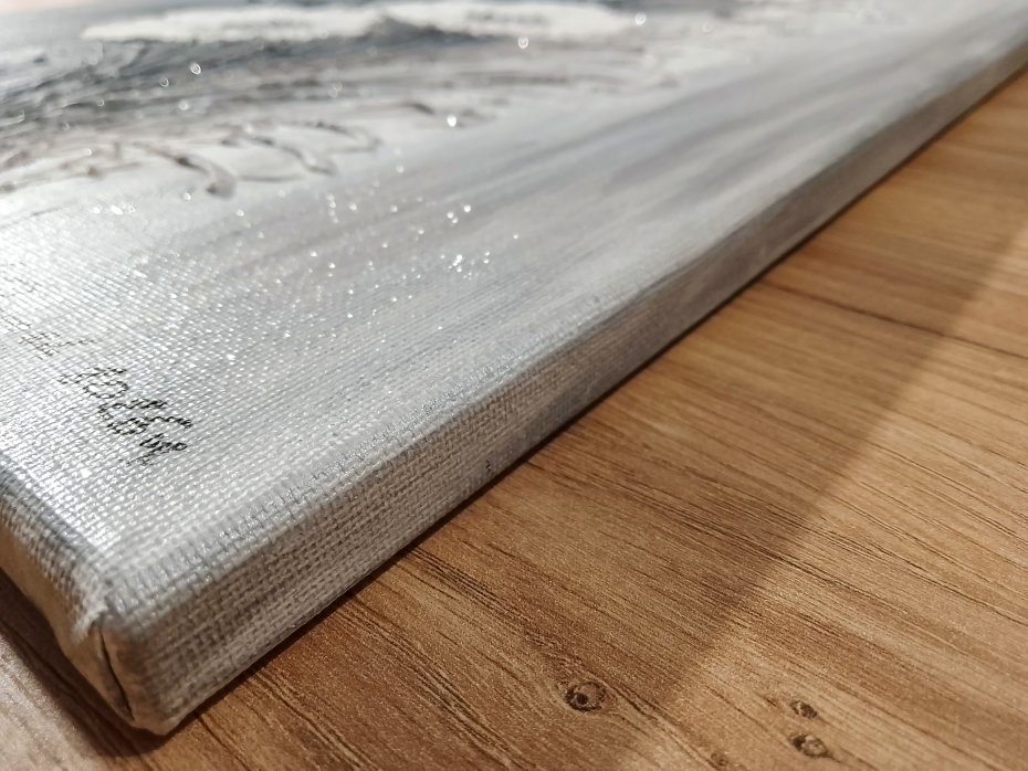 -Detale: Wyraźna, trójwymiarowa faktura zmieniająca się w zależności od kąta padania światła. Estetycznie zamalowane boki, dzięki czemu obraz jest gotowy do zawieszenia i nie wymaga dodatkowej oprawy w ramę