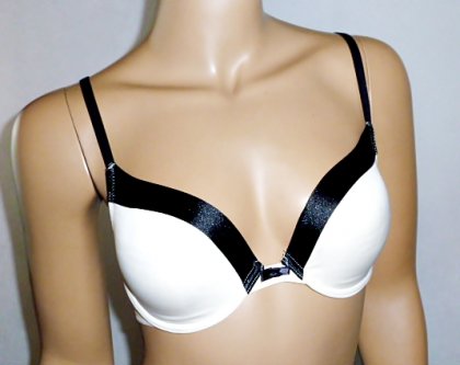 Biustonosz w zmysłowej kolorystyce kremu i czerni firmy next 32D rozmiar europejski z metki 70D. Biustonosz usztywniany w dolnej części z wypełnieniem lekkim miseczek dających efekt push up. Miseczki na fiszbinach. Ramiączka regulowane. Biustonosz pięknie się prezentuje. Stan nowy bez papierowej metki.
