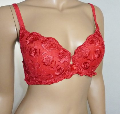 Biustonosz w zmysłowej kolorystyce czerwieni firmy chicca rozmiar 80C. Biustonosz z efektownym haftowanym wzorem miseczki kryte, półmiękkie. Miseczki na fiszbinach. Ramiączka regulowane. Biustonosz pięknie się prezentuje. Stan nowy bez papierowej metki.