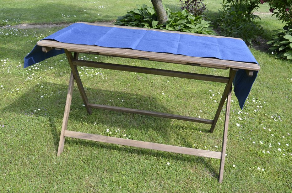 grubszy, dwuwarstwowy; brak metki ze składem, wg mnie poliester