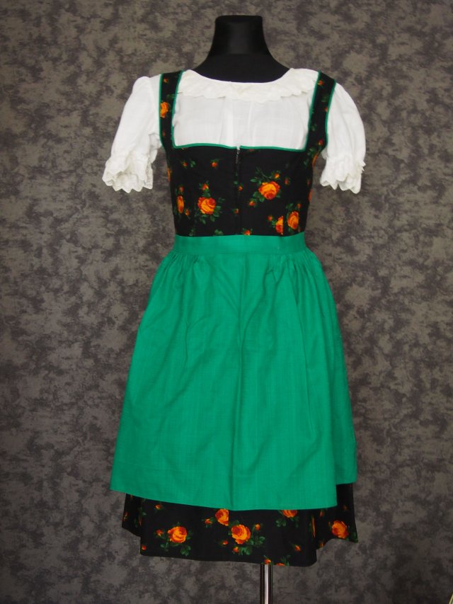 Oryginalny bawarski strój ludowy z wysokiej jakości bawełny - trzyczęściowy - sukienka zakładana pod biust, bluzeczka i fartuszek. Nowe. Z wysokiej jakości bawełny.