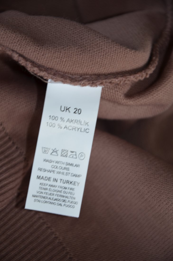 sweter Fashionkilla, nowy, rozmiar UK20 ale jest mniejszy (wprawdzie szeroki w pachach ale wydaje się mniejszy niż rozmiar na metce); powinien dobrze leżeć na 40,42 i 44; orientacyjnie zaznaczam w opcjach oferty rozmiar 42/XL - proszę sprawdzić wymiary: