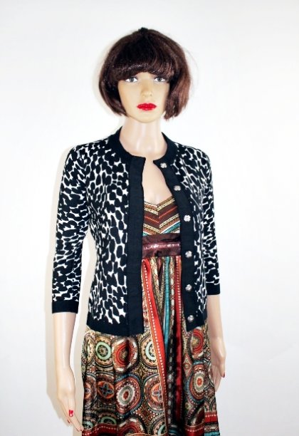 Świetny nowy sweter marki New Look z limitowanej edycji-Limited Edition. Ciekawy wzór. Zapinana z przodu na schowane pod materiałem duże metalowy zatrzaski. Materiał 71% viskoza, 29% nylon. Stan nowa z kompletem metek i zapasowymi guzikami w torebce. Cena z metki 49 Euro.
