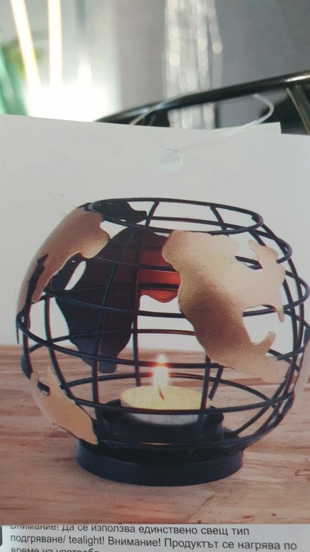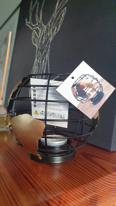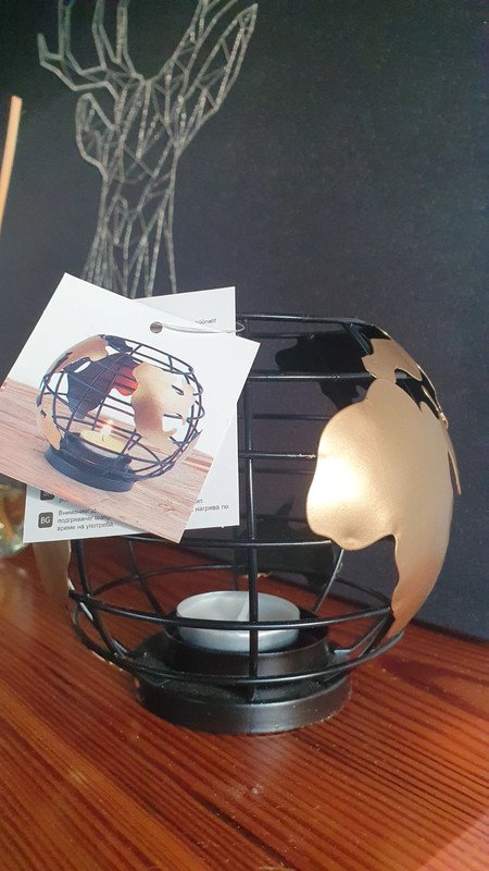 Nowy świecznik metalowy globus, wysokość ok. 11cm. W zestawie świeczka/tealight.