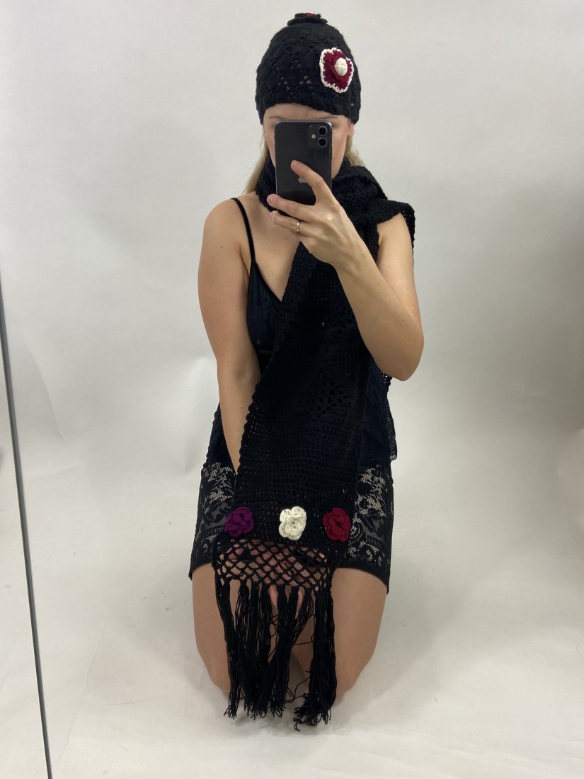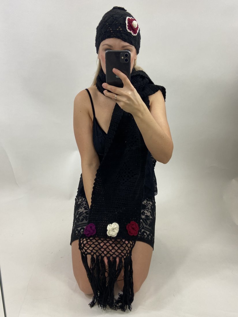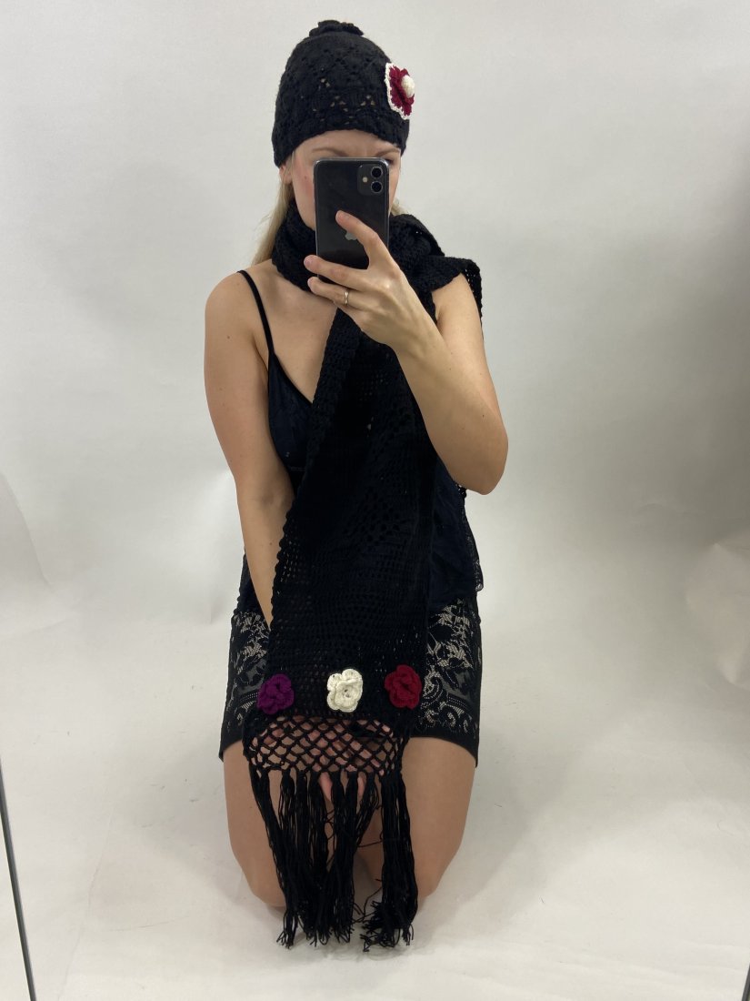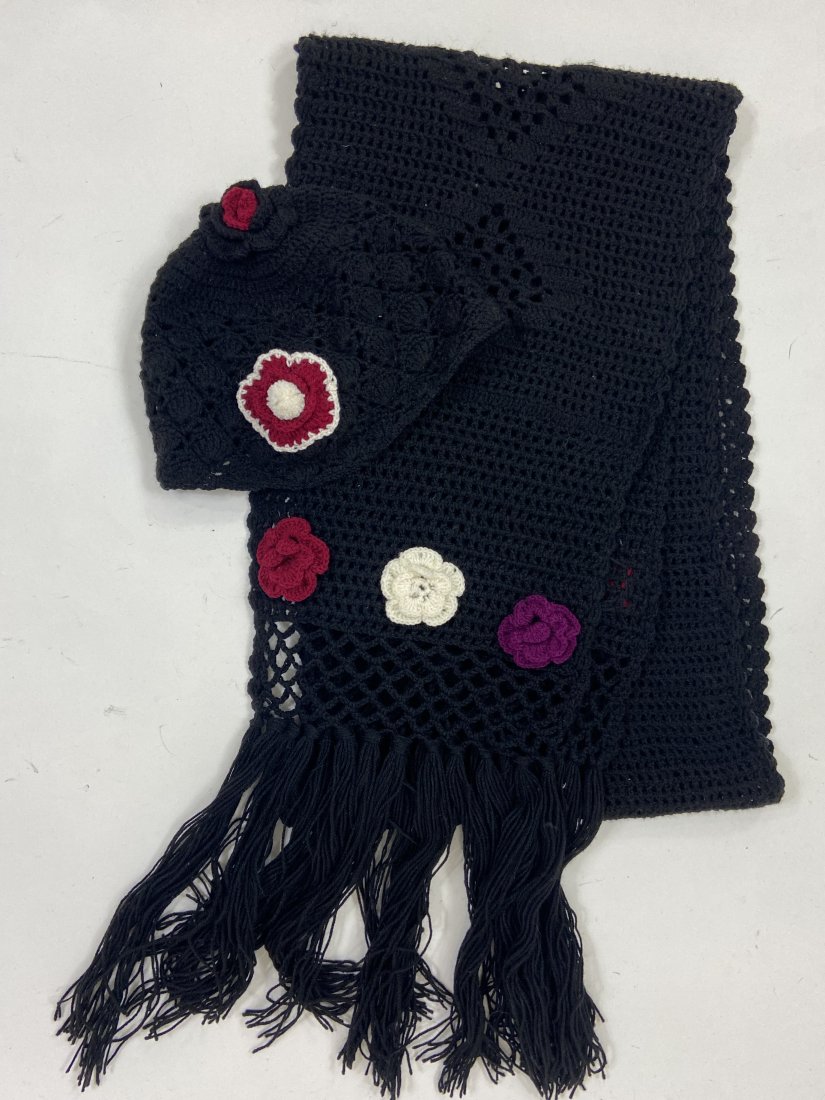 Uroczy, wykonany na szydełku zestaw. Szal+ czapka krótka. Włóczka raczej akrylowa, miękka. Całość przepiękna.