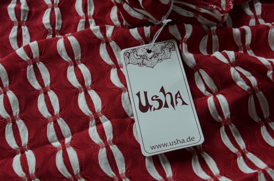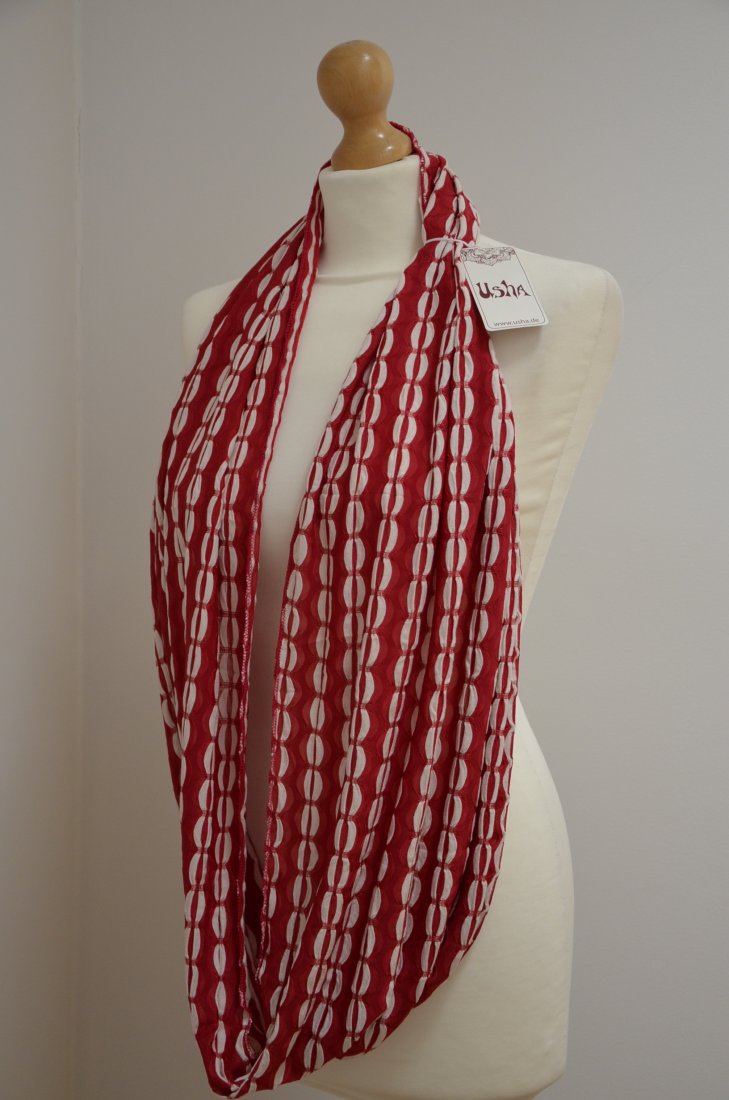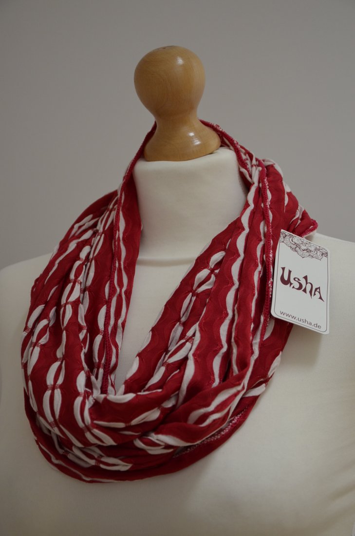 nowy szal niemieckiej marki USHA, kolor Rot (czerwony z białymi akcentami);