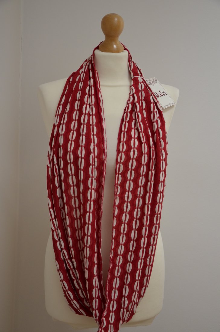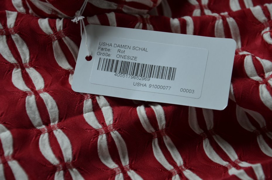 nowy szal niemieckiej marki USHA, kolor Rot (czerwony z białymi akcentami);