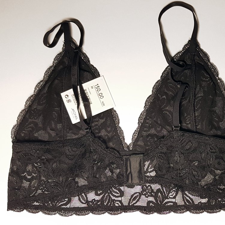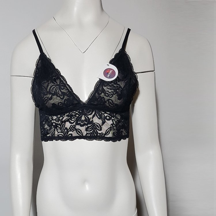 Miękki, koronkowy biustonosz MONKI. Miseczki nieusztywniane, wyścielone dodatkową warstwą siatki. Z tyłu zapięcie na haftki (3 rzędy - możliwa regulacja)