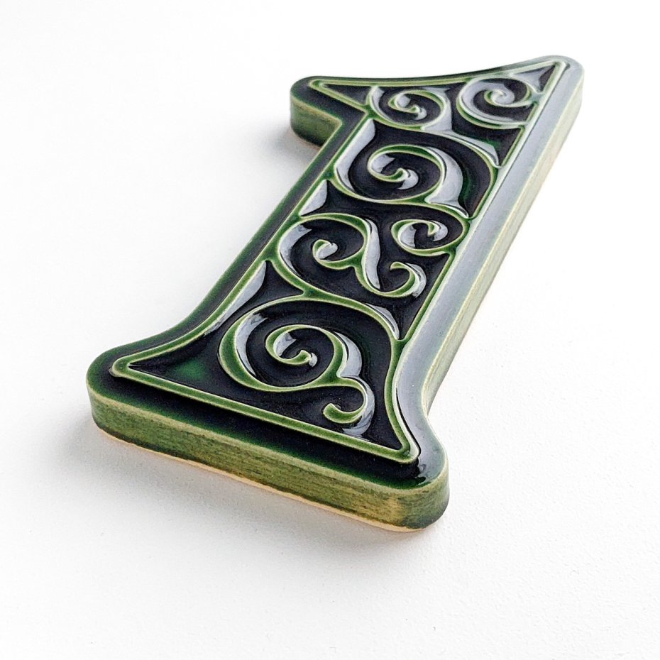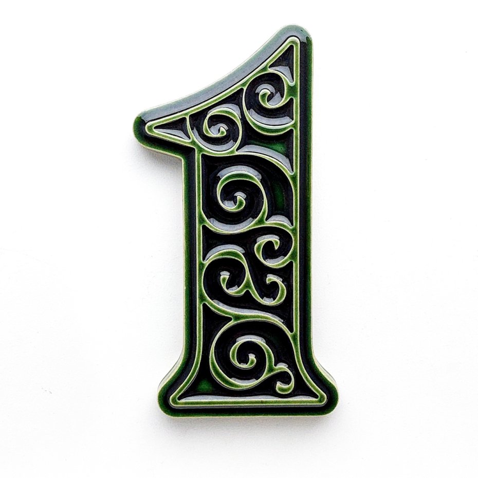 Ceramiczna cyfra 1 z ozdobnym lekko wypukłym ornamentem, do zamocowania na elewacji budynku. Wykonana z jasnej gliny, pokryta błyszczącym szkliwem, wypalona dwukrotnie w wysokiej temperaturze. Do klejenia cyfr można stosować kleje montażowe odporne na działanie warunków atmosferycznych. Unieruchomienie cyfry na czas schnięcia kleju umożliwia krawędziowy kołnierz od spodu cyfry. Polecam serdecznie.