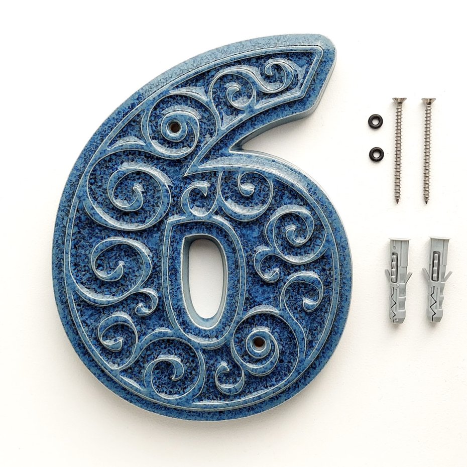 Cyfra posiada otwory dzięki którym można ją zamontować np. na ścianie budynku lub na drewnianej powierzchni np. płot, tablica, itp