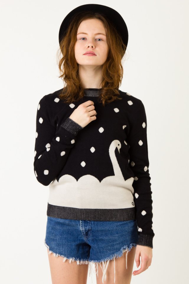 Elastyczny czarny sweter z łabędziem. Marka: Numph.