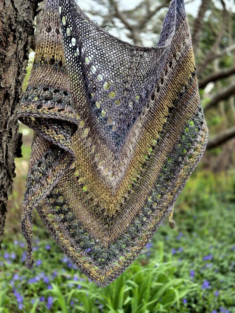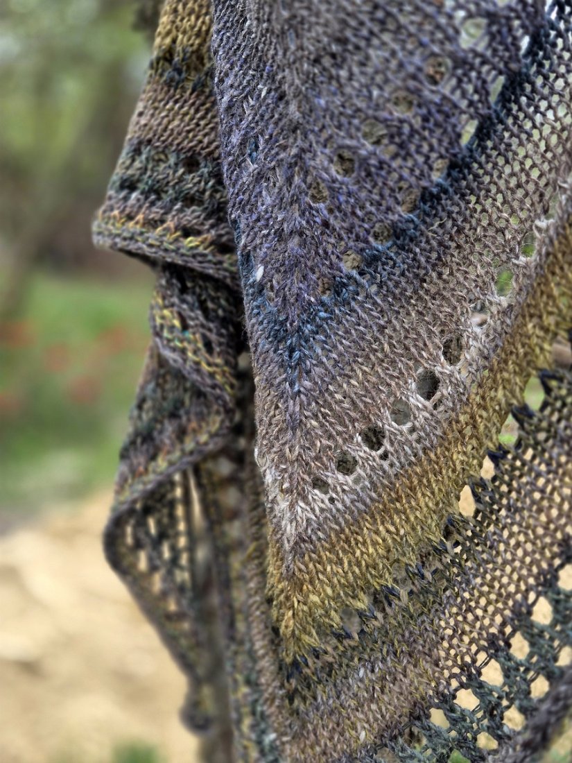 Klasyczna, średniej wielkości chusta wykonana z cudownej japońskiej Noro: włóczka jakby zgrzebna ze zgrubieniami i pięknymi niuansami kolorystycznymi.