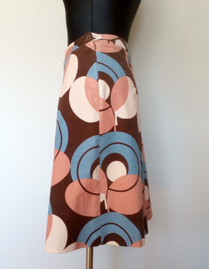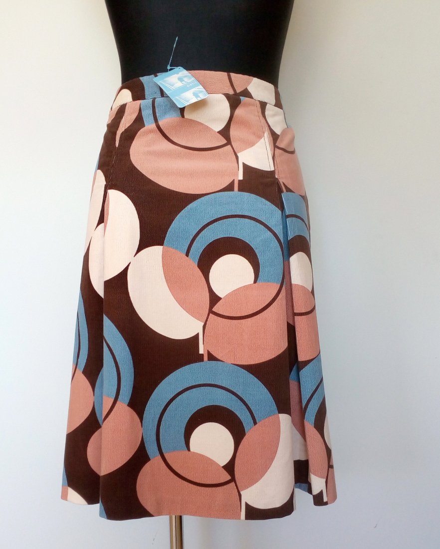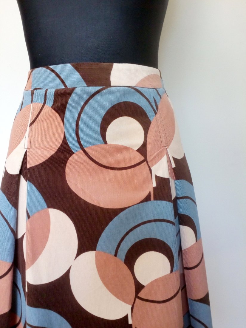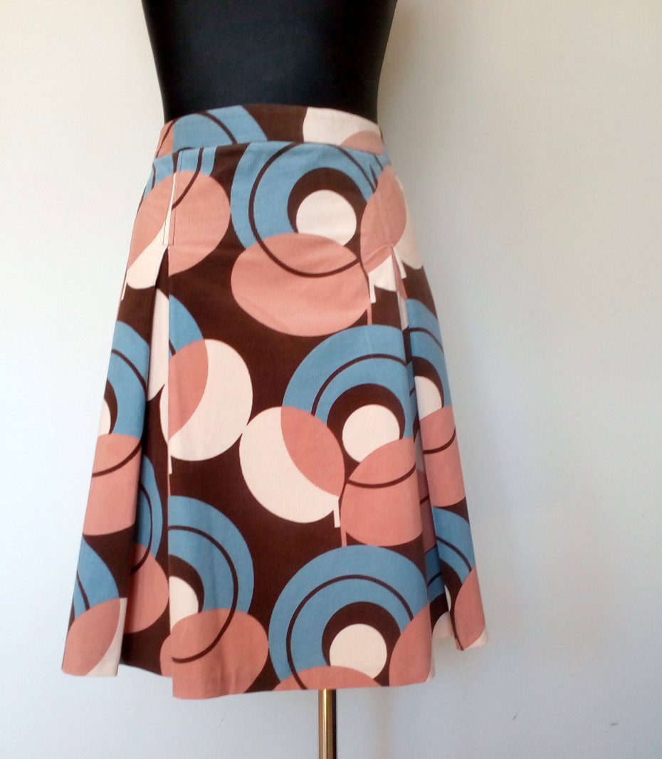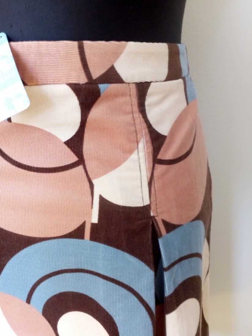 Nowa spódnica z drobnego sztruksu, zapinana z boku na zamek i guzik, z przodu i z tyłu po dwie kontrafałdy, całość bez podszewki