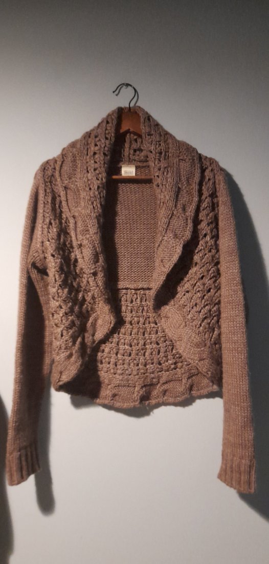 Hiszpański sweter narzutka, miękki,mięsisty,lekki,ciepły,nowy bez papierowej metki, uniwersalny,w realu odcień kawa z mlekiem jak na ostatnim zdjęciu ,długość max 63 tył