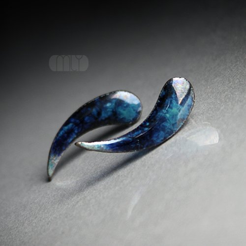 Ceramiczne podłużne kolczyki, ręcznie wykonane z delikatnej gliny kamionkowej, jednostronnie szkliwione mieszanką błękitnych szkliw z efektem plamek, tył matowy czekoladowobrązowy na antyalergicznych sztyftach w kolorze srebrnym.długość ok 2,8cm. Polecam