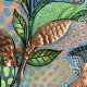 Ten obraz jest pełen wyrazistych kolorów i bogatej tekstury, łącząc elementy natury z abstrakcyjnymi wzorami. Centralny motyw roślinny jest otoczony organicznymi kształtami i wzorami, które przyciągają wzrok, a dominujące kolory to odcienie zieleni, różu, fioletu oraz czerni. Tło jest wypełnione drobnymi kropkami, liniami i kontrastującymi wzorami, które dodają obrazu głębi.