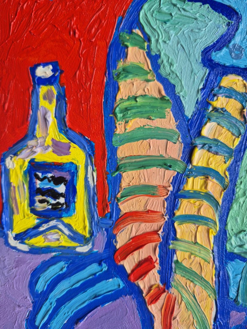 Obraz namalowany olejami na płycie 21/29 cm, sygnowany z przodu. Jest to moja autorska kompozycja. Świetnie może być eksponowany w nowoczesnych wnętrzach o stonowanej kolorystyce. Swoimi barwami może rozjaśnić takie wnętrza, w oświetleniu dziennym, jak i sztucznym. Idealny na prezent